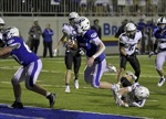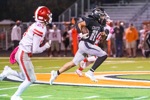 South Medford's Jaylin Parnell reaches out with the football to break the plane of the end zone for one of his five touchdowns against Grants Pass at Spiegelberg Stadium. The Panthers prevailed over the Cavemen, 40-21.