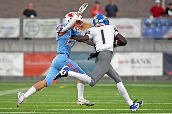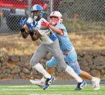 Ashland defensive back Teagen Marple (23) tries to haul down Crook County wide receiver Ke'nan Twigg (1) in the first quarter at Walter A. Phillips Field in Ashland on Friday.