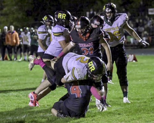 Late in the 2nd quarter RR #12 dives over IV #4 for RR's 3rd TD